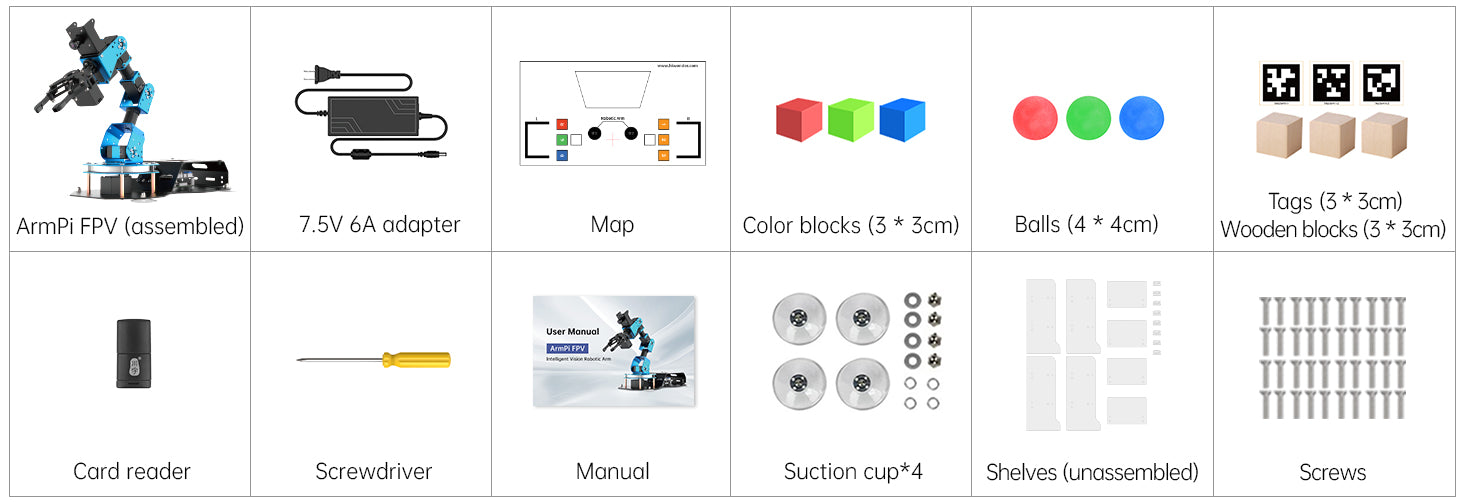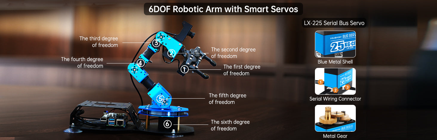 ![]() Powered by Raspberry Pi ArmPi FPV is powered by Raspberry Pi 4B/5 controller allowing you to embark on motion control, machine vision, and OpenCV projects. |
