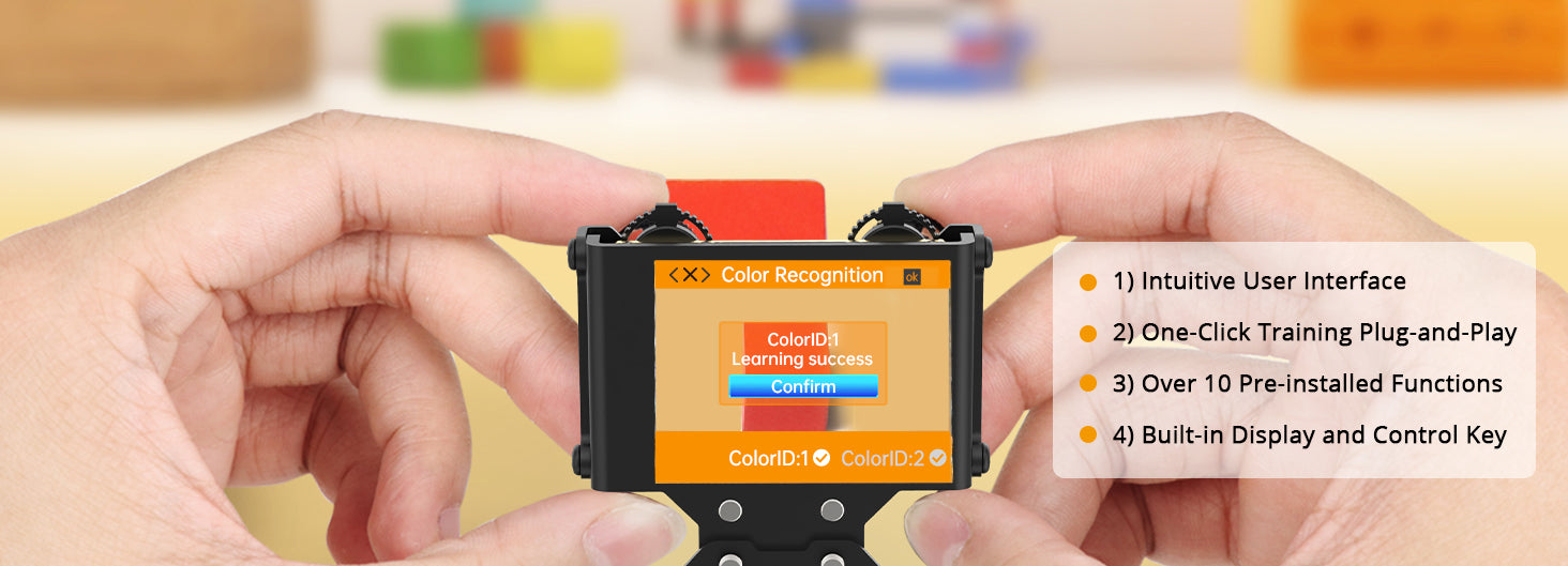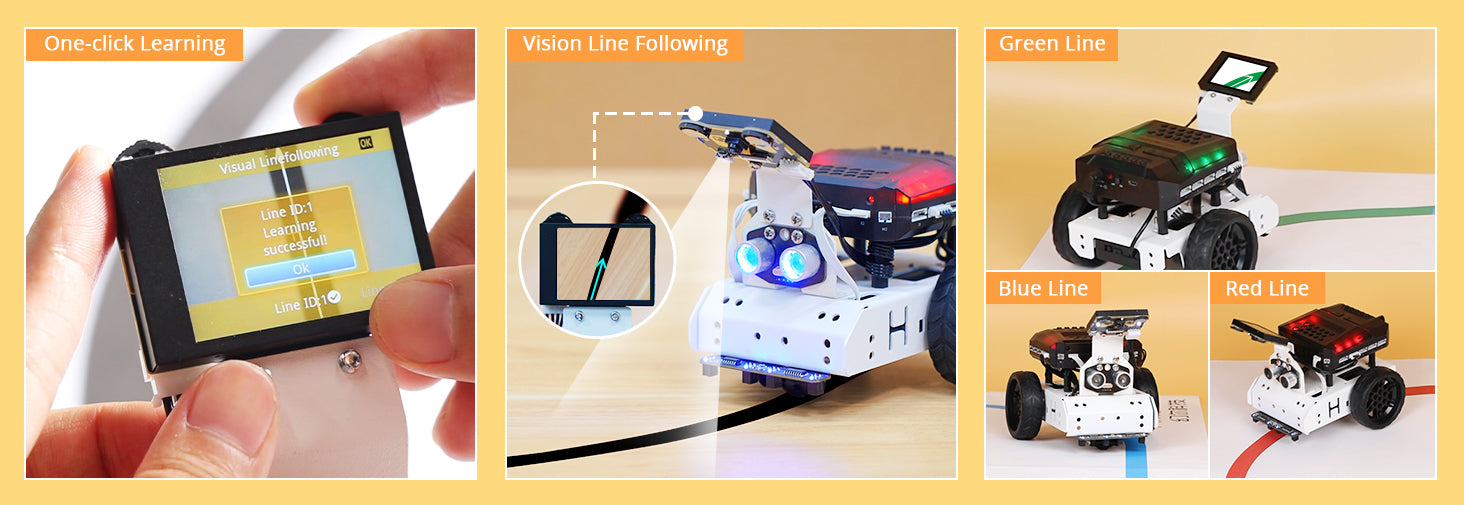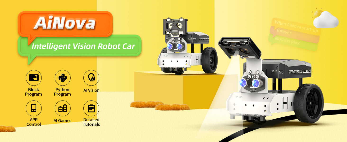 AiNova's AI vision module is integrated with some learning algorithms, allowing it to complete diverse AI vision projects such as color recognition and vision line following.