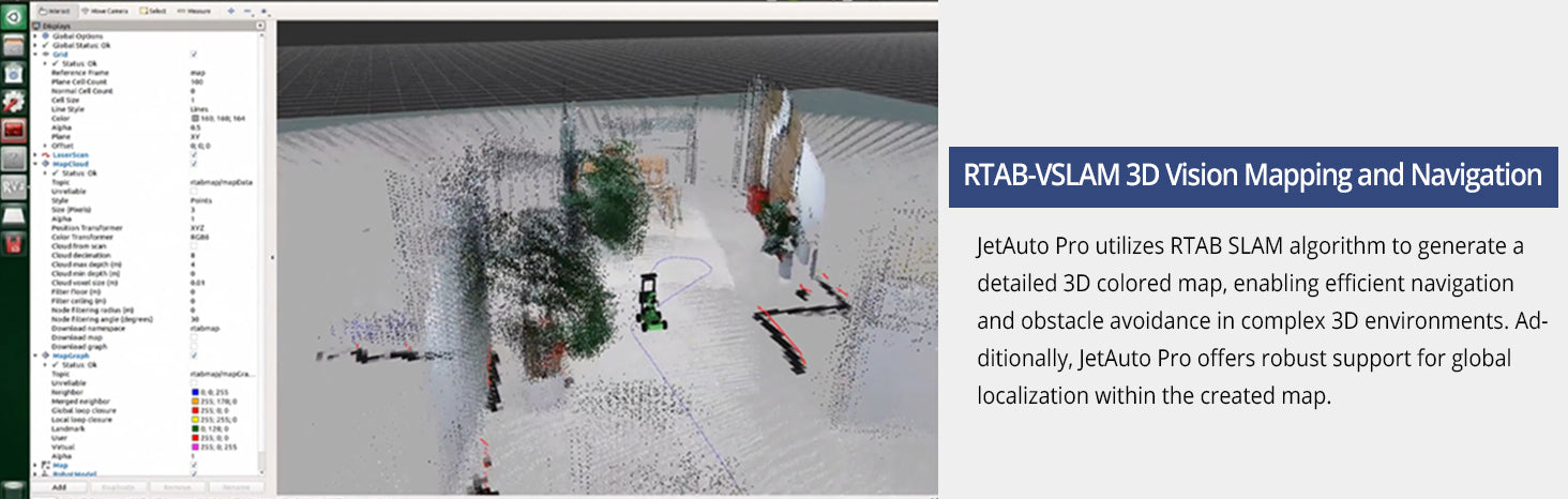 JetAuto Pro is a professional robotic platform for ROS learning and development, powered by NVIDIA Jetson Nano B01 and supports Robot Operating System (ROS). Within JetAuto Pro, you can learn and validate various robotic SLAM algorithms.