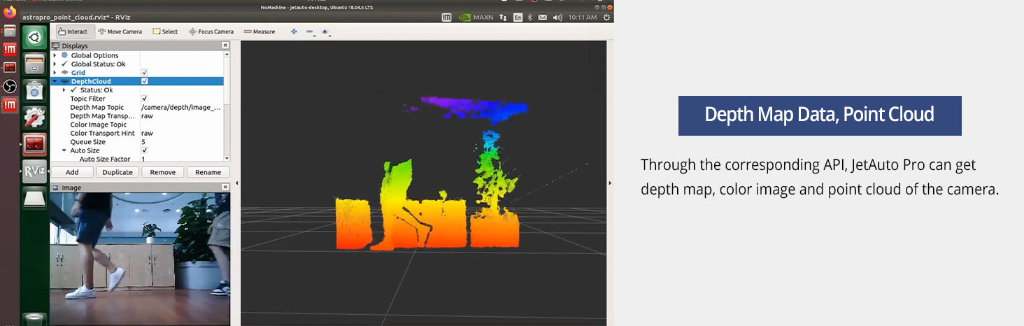 Equipped with a Astra Pro Plus depth camera, JetAuto Pro can effectively perceive environmental changes, allowing for intelligent Al interaction with humans.