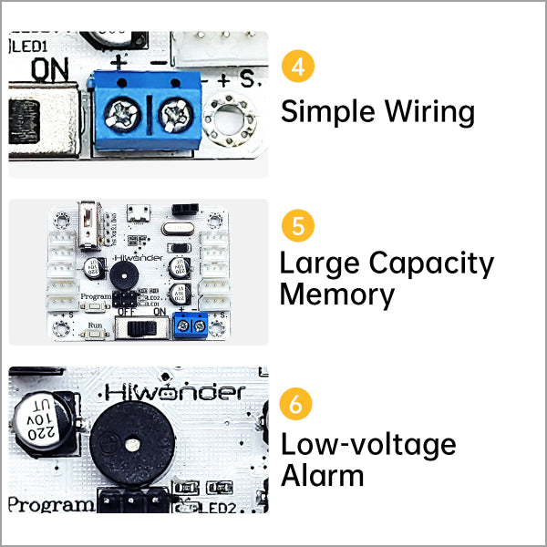 Support External MP3 or Bluetooth Module - If you plug in the MP3 module, you can make the robot make sounds; if you plug in the Bluetooth module, you can control the robot through Bluetooth.