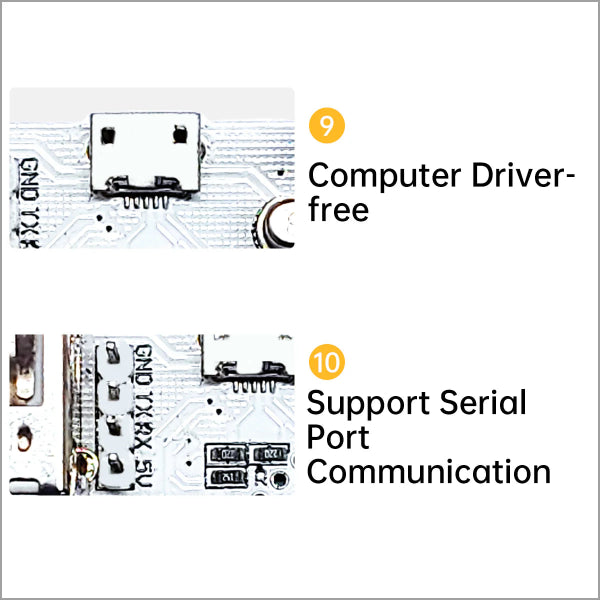 Support Serial Port Communication - It can connect to other micro-controller and other micro-controller can send command to it. Communication protocols of 51, STM32 and Arduino microcontroller are provided.