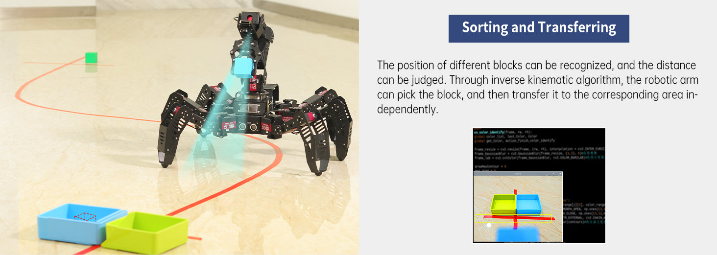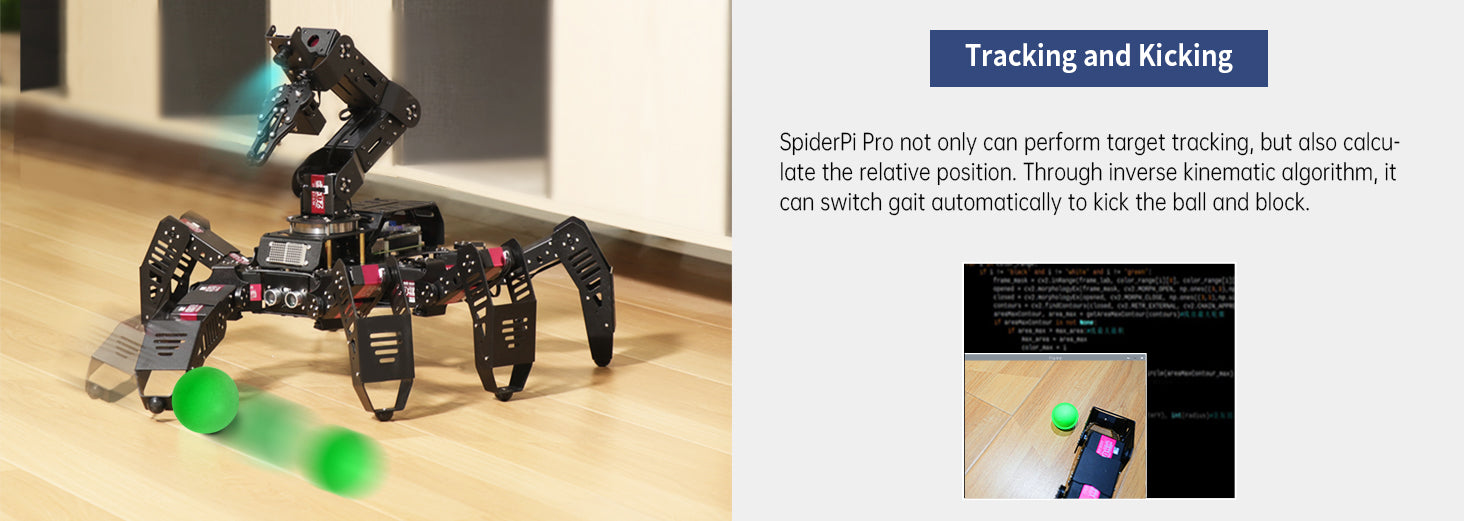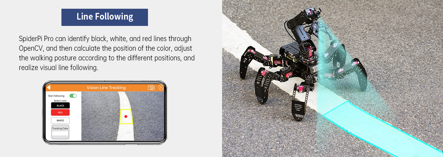 ![]() Powered by Raspberry PiSpiderPi Pro is powered by a Raspberry Pi 4B/5 controller that adjusts the body attitude. At the same time, we provide rich course materials to let you quickly experience motion control, machine vision and OpenCV projects. |