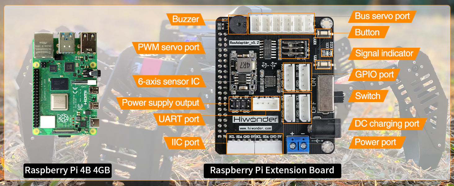 Note: the SpiderPi robotic arm includes a Raspberry Pi 4B 4GB controller.