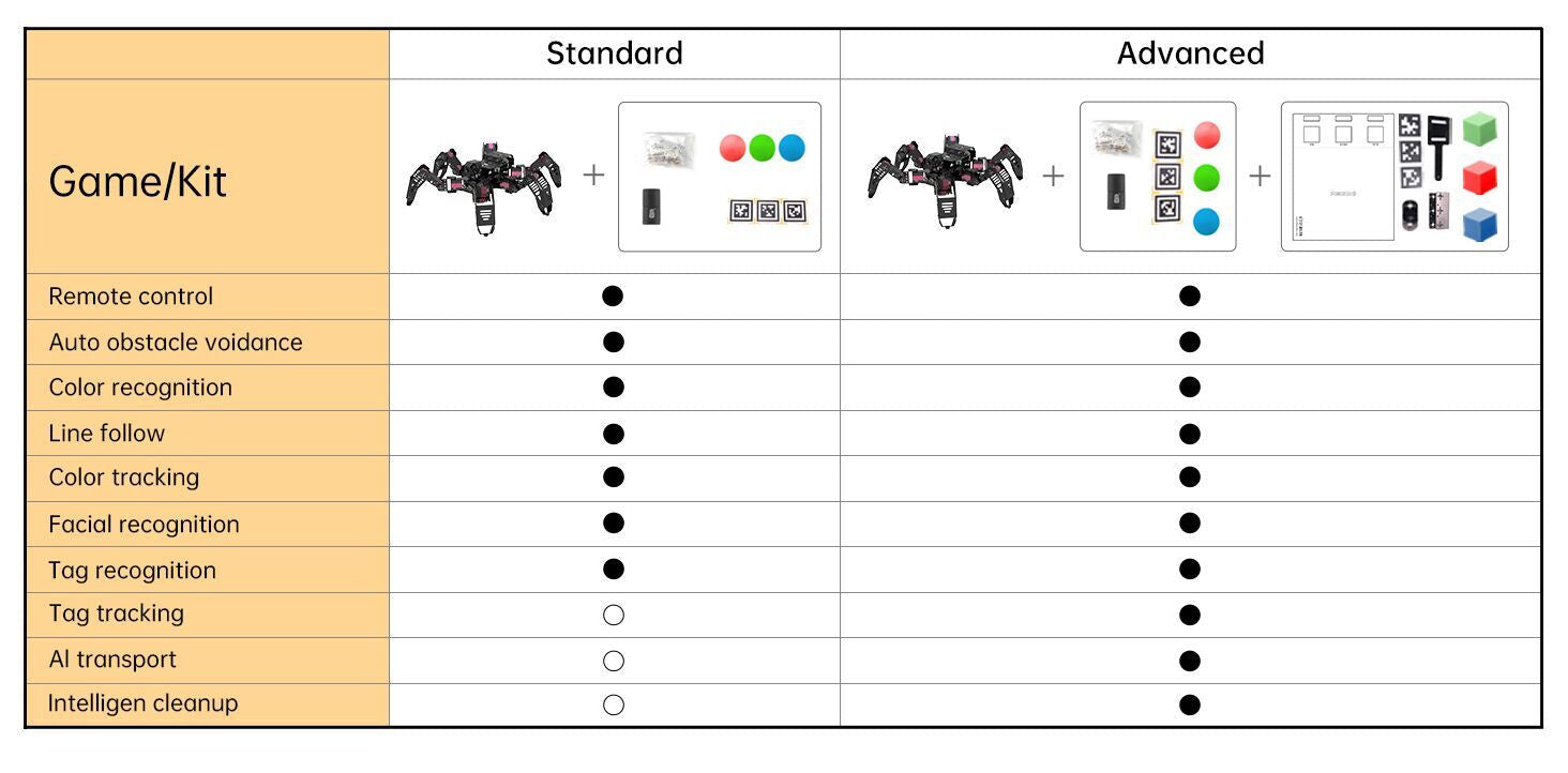 ![]() Intelligent TransportIn AI transport mode, SpiderPi detects the object distance by vision recognition, and then switch gaits autonomously to move it to the specific area. |