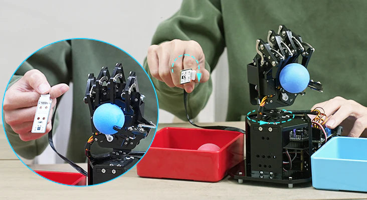 Control palm joint movements quickly throughthe knob potentiometer, immersing yourself in the seamless operation of the robotic hand.