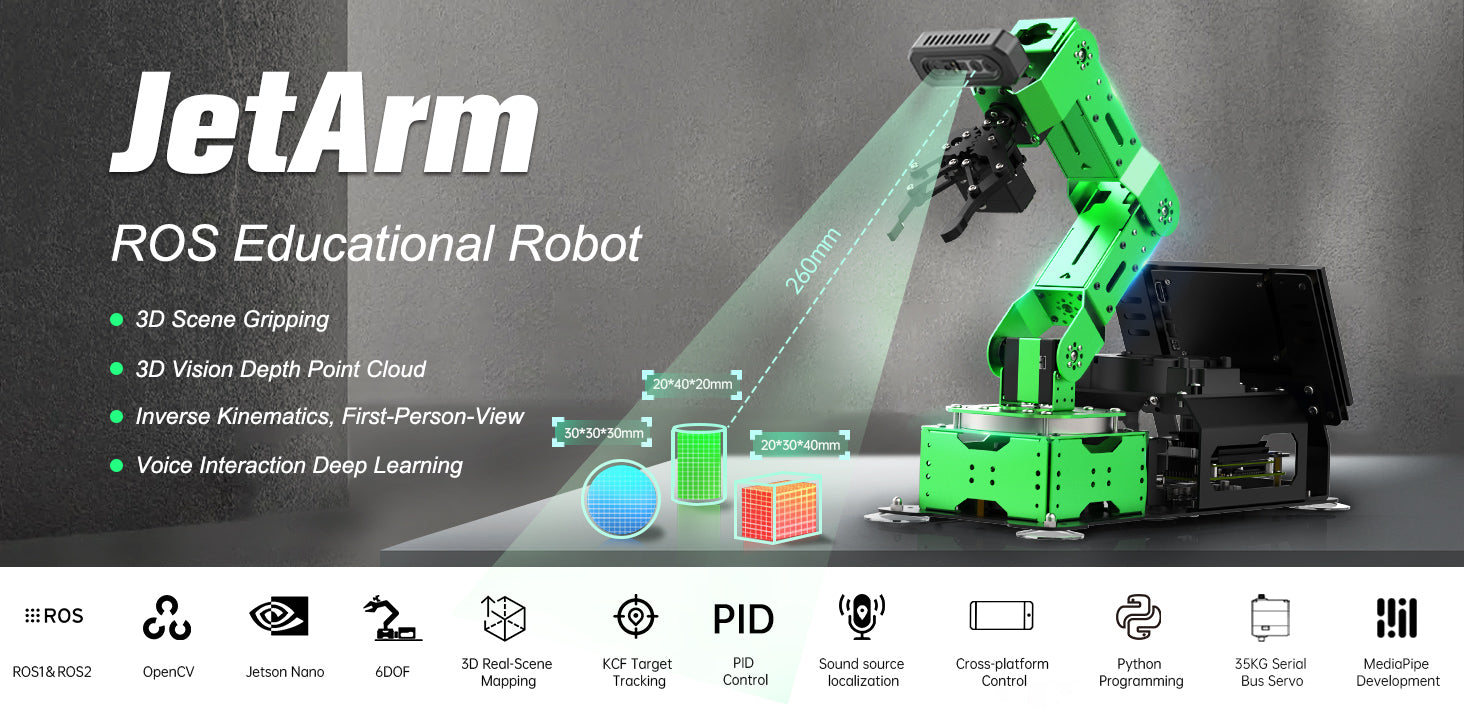 Hiwonder JetArm ROS1/ROS2 3D Vision Robot Arm, with Multimodal AI Model (ChatGPT), AI Voice Interaction and Vision Recognition, Tracking & Sorting