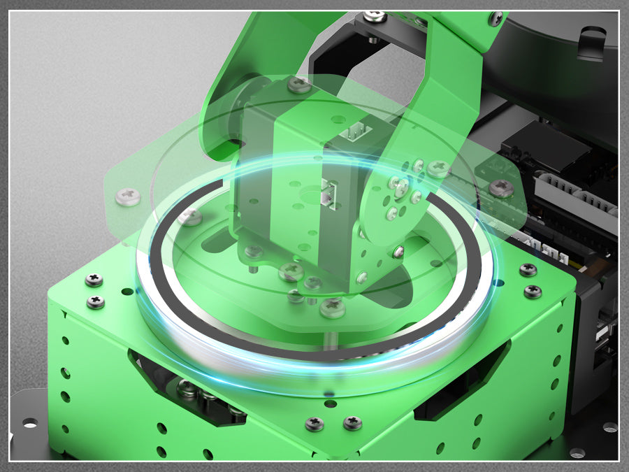 All-metal Structure, Bearing BaseThe body of the robot arm adopts an all-metal structure, and the surface is anodized, making it exquisite and beautiful. The base uses industrial-grade bearings to meet high-demand grabbing projects. |