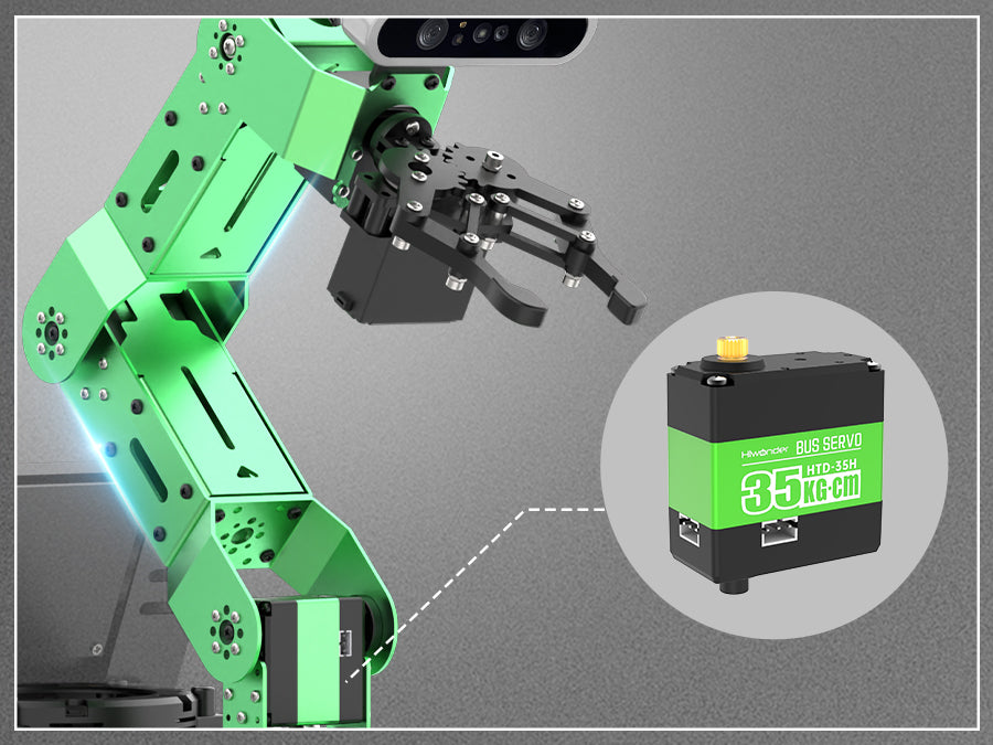 6DOF Robot Arm, Intelligent Bus ServoJetRover is equipped with a 6DOF robot arm and a high-torque bus high-voltage servo, which greatly extends the robot's endurance. |