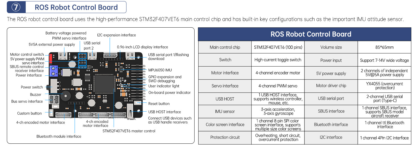 | Features | ROS in-depth development Able to overcome obstacles | Autonomous driving research | Pendulum suspension for stable driving 360° omnidirectional movement | Grabbing and transporting |
