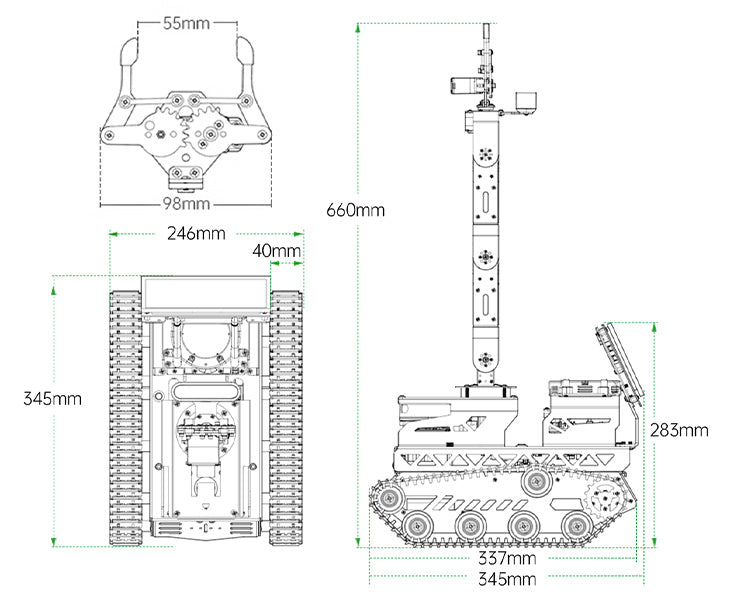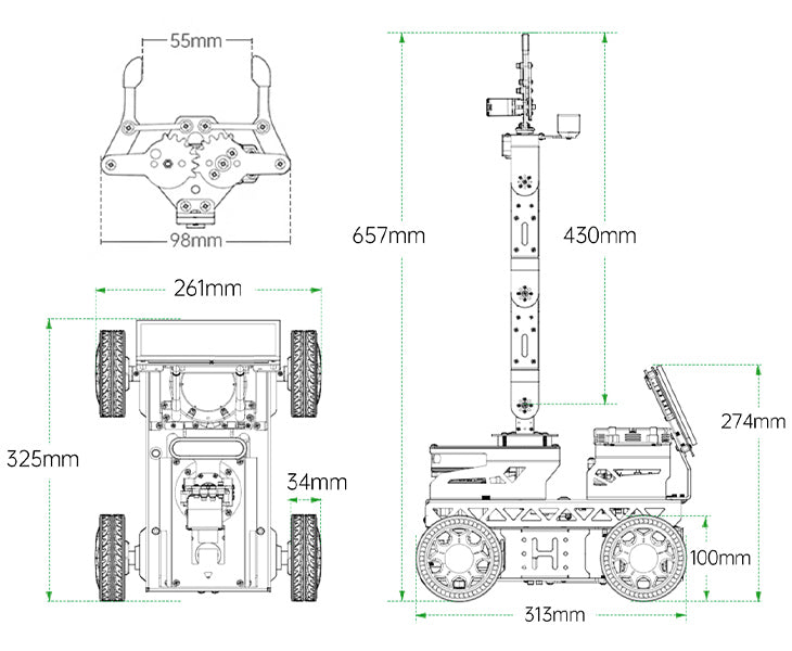 | Wheel | Nylon track | 100mm Solid rubber wheel | 97mm Mecanum wheel | 97mm Mecanum wheel |