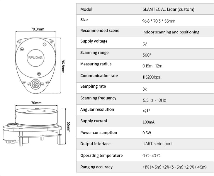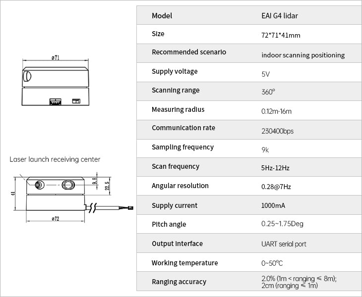 | Lidar | SLAMTEC A1/ EAI G4 | |||