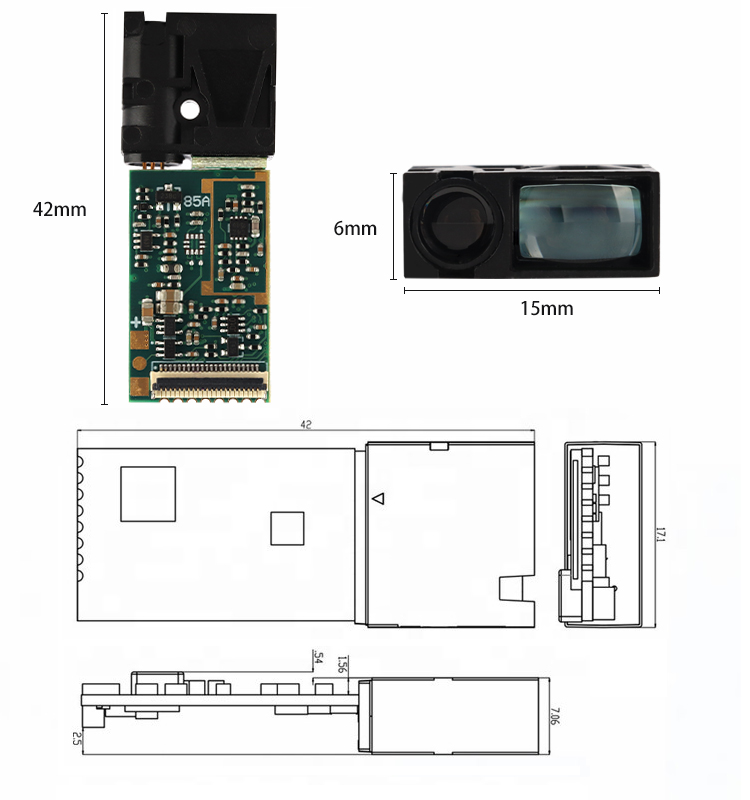 LDL is a high-precision Laser Ranging Sensor, independently developed by Chengdu Meskernel Integrated Technology Corporation ,with small-size(41*17*7mm) and light weight, around 4g , the compact design is convenient for OEM users to integrate into systems and equipment, and the UART communication interface provides users to develop and program their own application.
