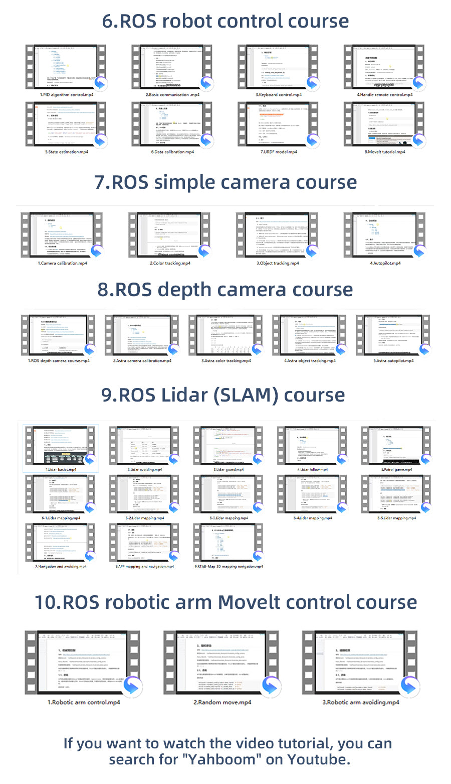 - Detailed video teaching courses: We provide 64 video tutorials and detailed documents. Whether you are a beginner or an experienced ROS player, you can easily use this robot.